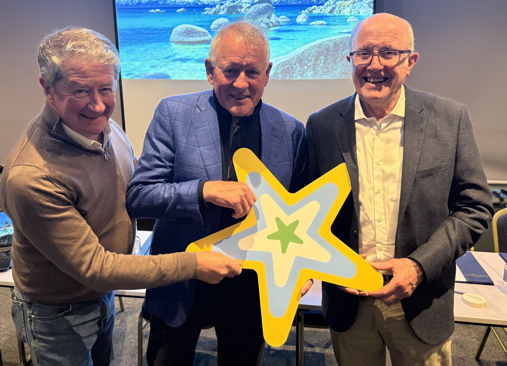 ButtonSAMRA AGM - SAMRA launched its new exciting logo which aims to capture what’s unique in the village. The Village Green is depicted at the centre surrounded by representation of the 5-road junction which meet at the Green with the colours reflecting the sky, beach and strand. Pictured at the launch are SAMRA Committee members Karl Anderson, David Turner (Chair) and Niall McElroy.