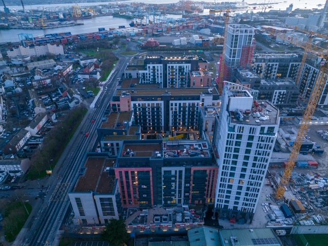 - The Developer is obliged to build the scheme in accordance with the Poolbeg SDZ Masterplan which was granted Planning Permission in 2019. As such, the extent of housing, commercial and associated services and facilities buildings, carparking and outdoor spaces has been pre-determined. As examples, there is provision for a site for a primary school, a health facility, and a pub. At this time, the Dept of Education have provided no indication as to when they will develop the school.