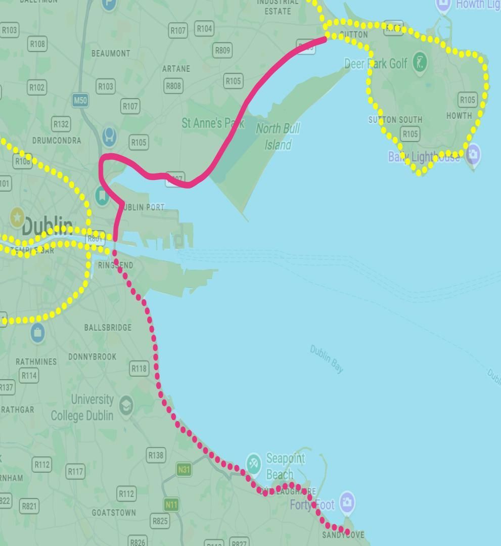- The arc on the northside from Clontarf to Sutton is in place and Dublin Port are in the process of extending it through the Port to the Liffey.
